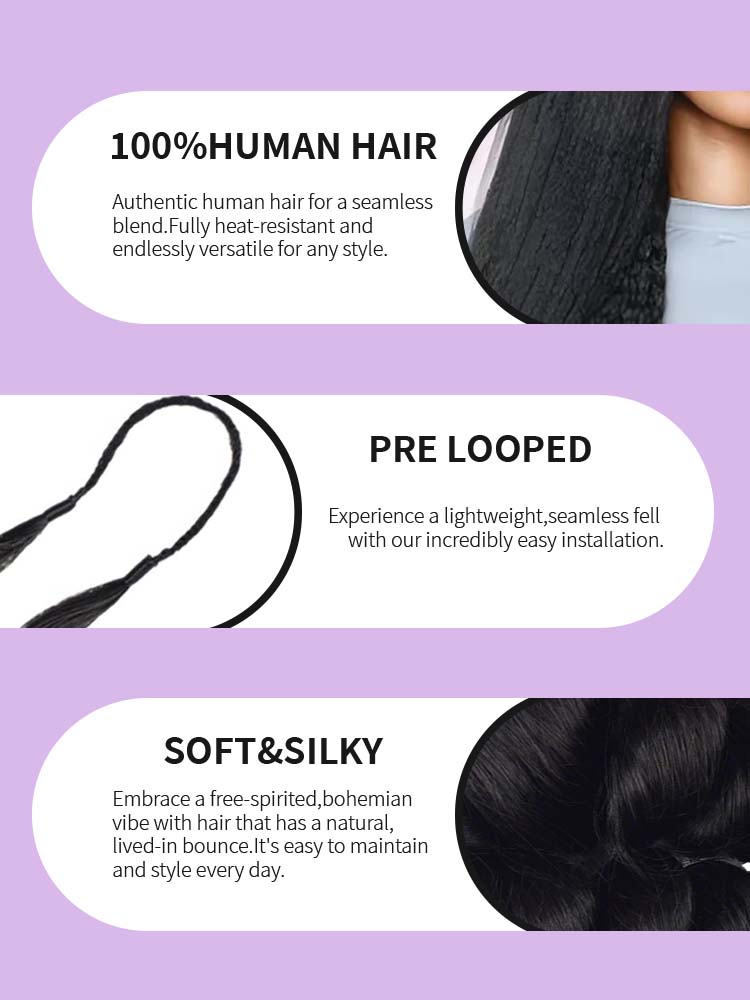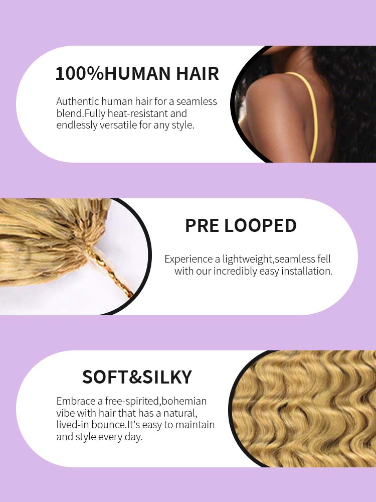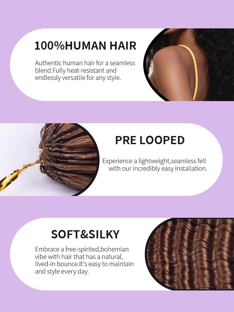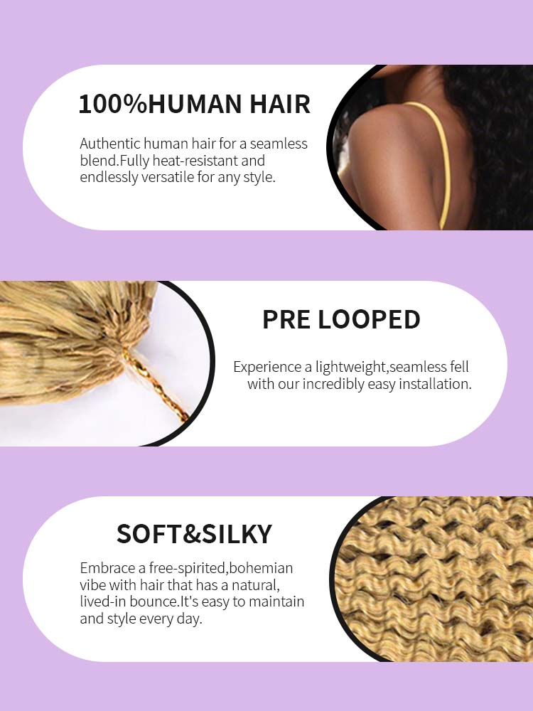 Variahair Double Drawn Grade Italian Curly Human Hair Reusable Crochet Hair Pre Loop Extensions Invisible String