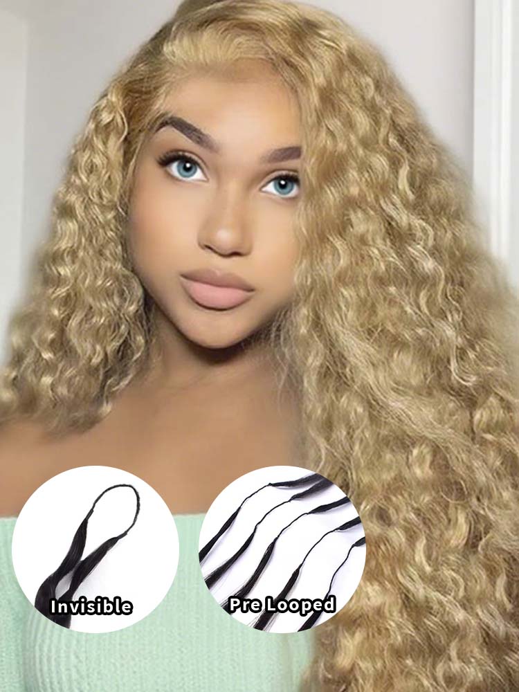 Variahair Honey Blonde Color Afro Kinky Curly Double Drawn Grade Human Hair Reusable Crochet Hair Extensions Invisible String