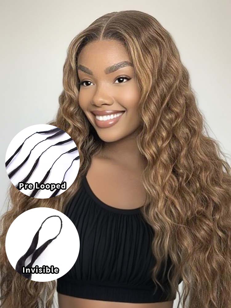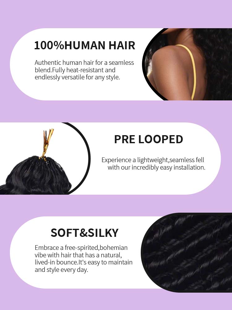 Variahair Deep Wave Crochet Hair - Double Drawn Human Hair Extensions Invisible String