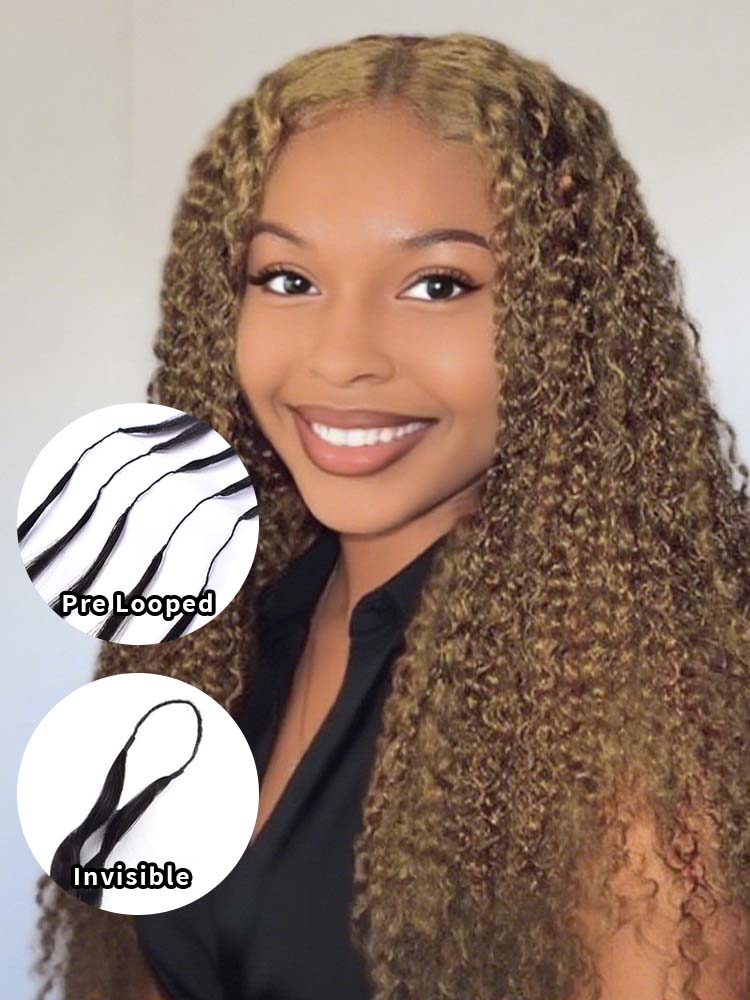Variahair Honey Blonde Color Afro Kinky Curly Double Drawn Grade Human Hair Reusable Crochet Hair Extensions Invisible String