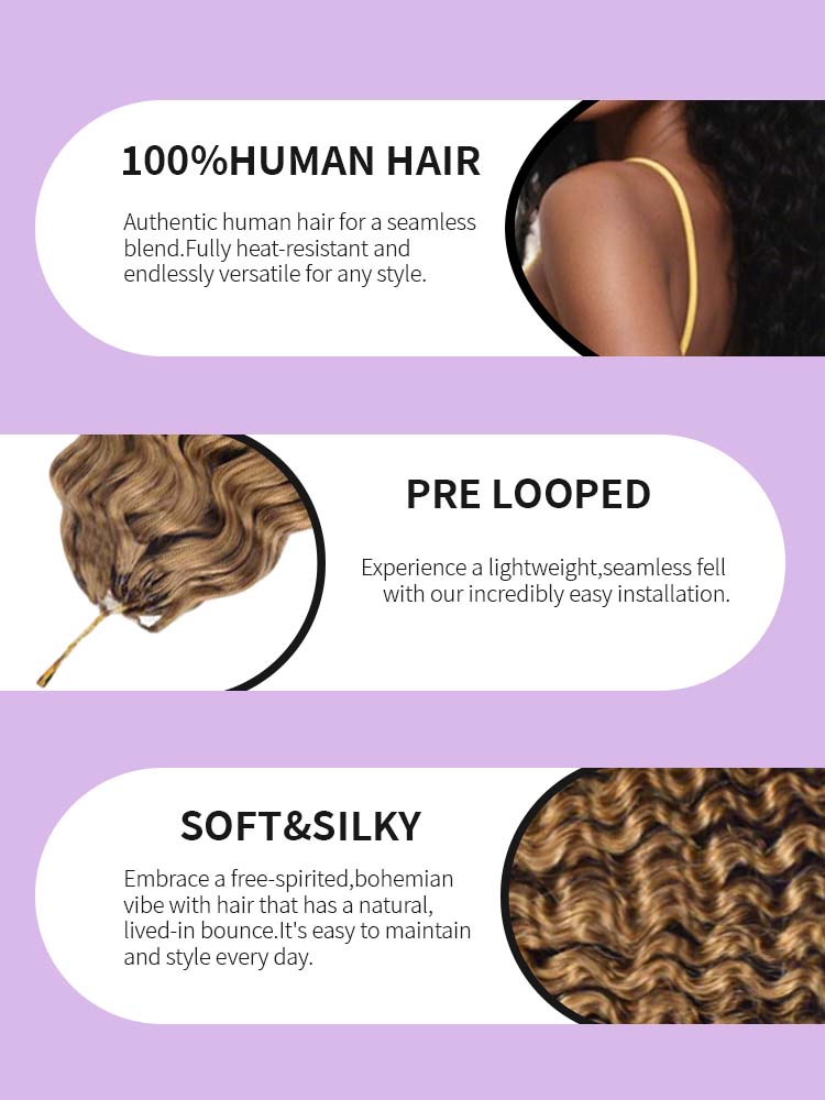 Each strand is lightweight, soft, and pre-looped, making installation simple for beginners and pros alike. Whether you’re going for a bold curly afro or a soft, defined texture, this hair blends seamlessly with your natural curls giving you that flawless, full-bodied look without the damage.