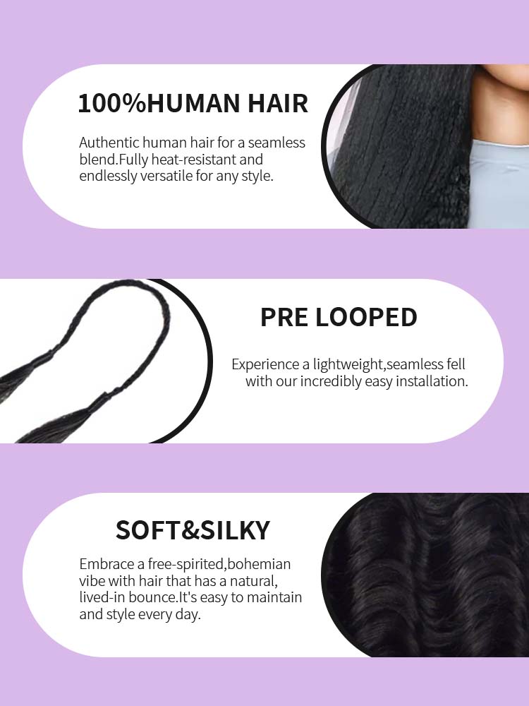 Premium Quality: Made from 100% human hair for a soft, natural feel.