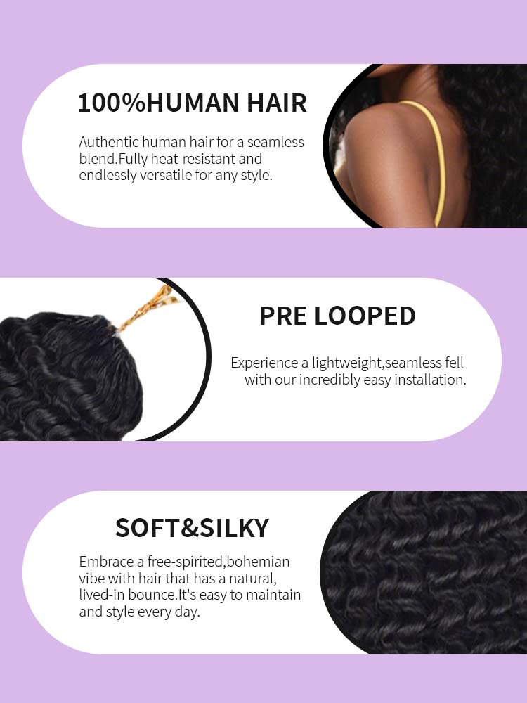 100% Human Hair Crochet Feather Extensions – Pre-Looped & Invisible Finish