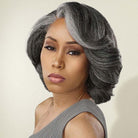 Human Hair 5x5 Lace Closure Wigs Salt Pepper Grey Wavy Bob Side Part Glueless Natural Look Pre Plucked