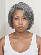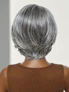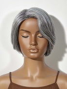 Human Hair Salt and Pepper Color Pixie Cut Short Bangs 5X5 closure Lace Wig Wear and Go