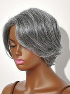Step confidently into your silver era with our Human Hair Salt and Pepper Color Pixie Cut Short Bangs 5x5 Closure Lace Wig. Designed especially for women embracing their natural grey, this chic, ready-to-wear style celebrates sophistication, confidence, and timeless beauty no dyes, no hassle, just natural grace.