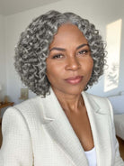 Short Bob Human Hair Wig Glueless 13X4 Lace Frontal Salt And Pepper Curly Pre Plucked
