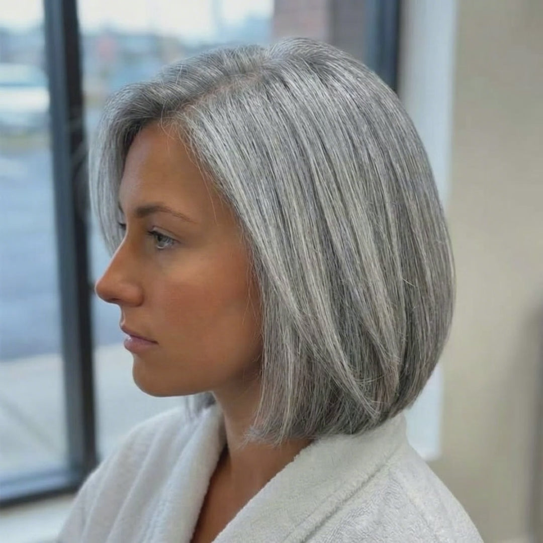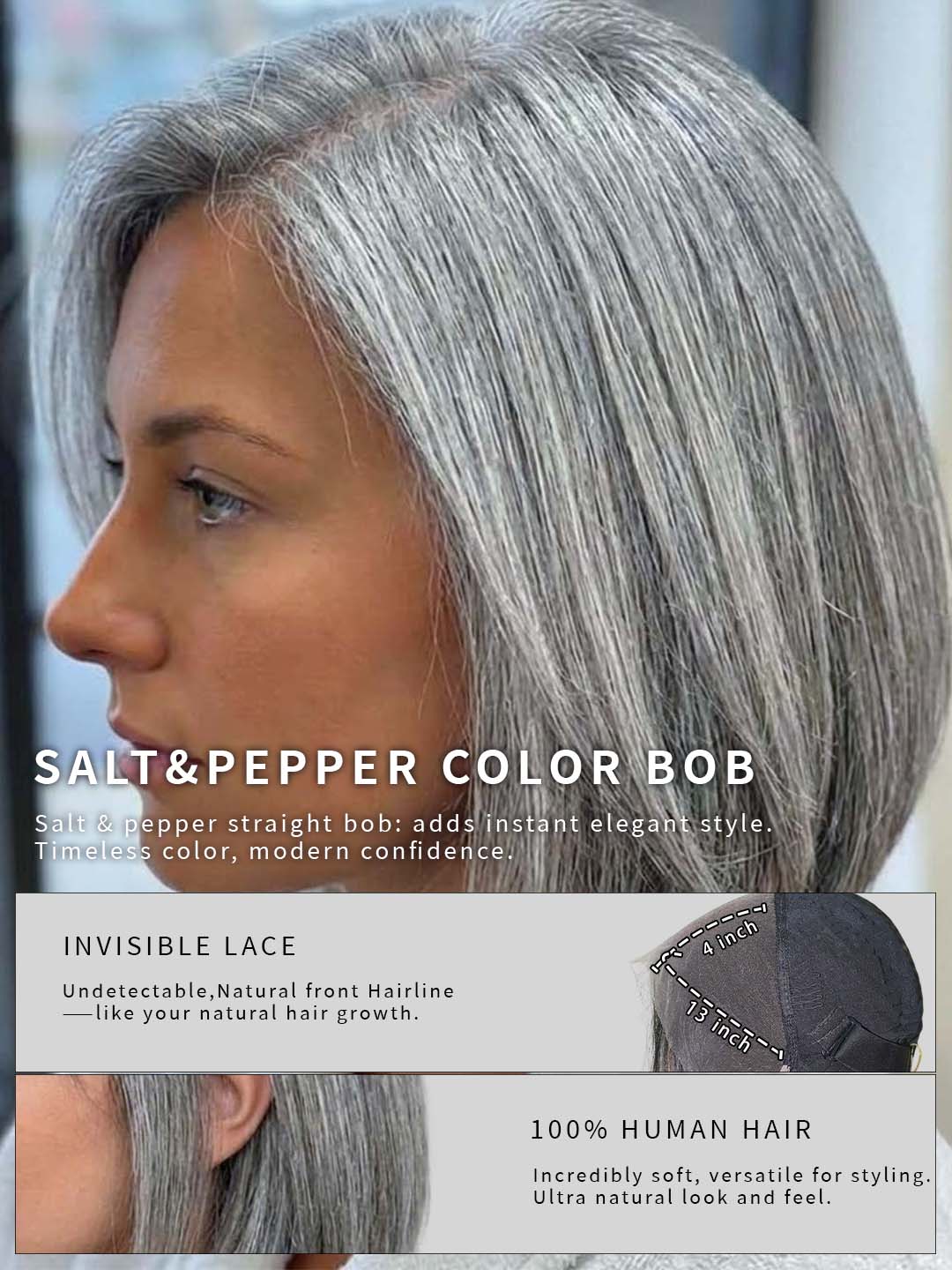 Step into timeless elegance with the Varia Hair 13x4 Lace Frontal Short Bob Wig a chic, natural, and effortless look that celebrates beauty at every age. Designed for everyday women who want to look stylish without spending hours styling, this Salt and Pepper human hair wig combines modern sophistication with unmatched comfort. Whether you’re a busy professional, mom, or student, this glueless wig lets you achieve a polished look in minutes.
