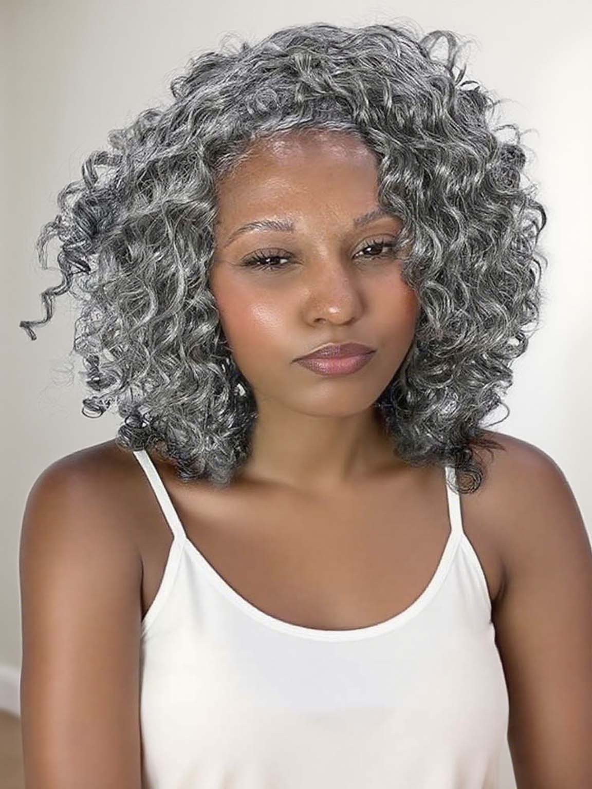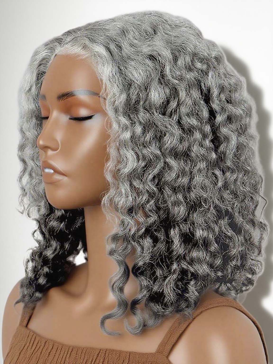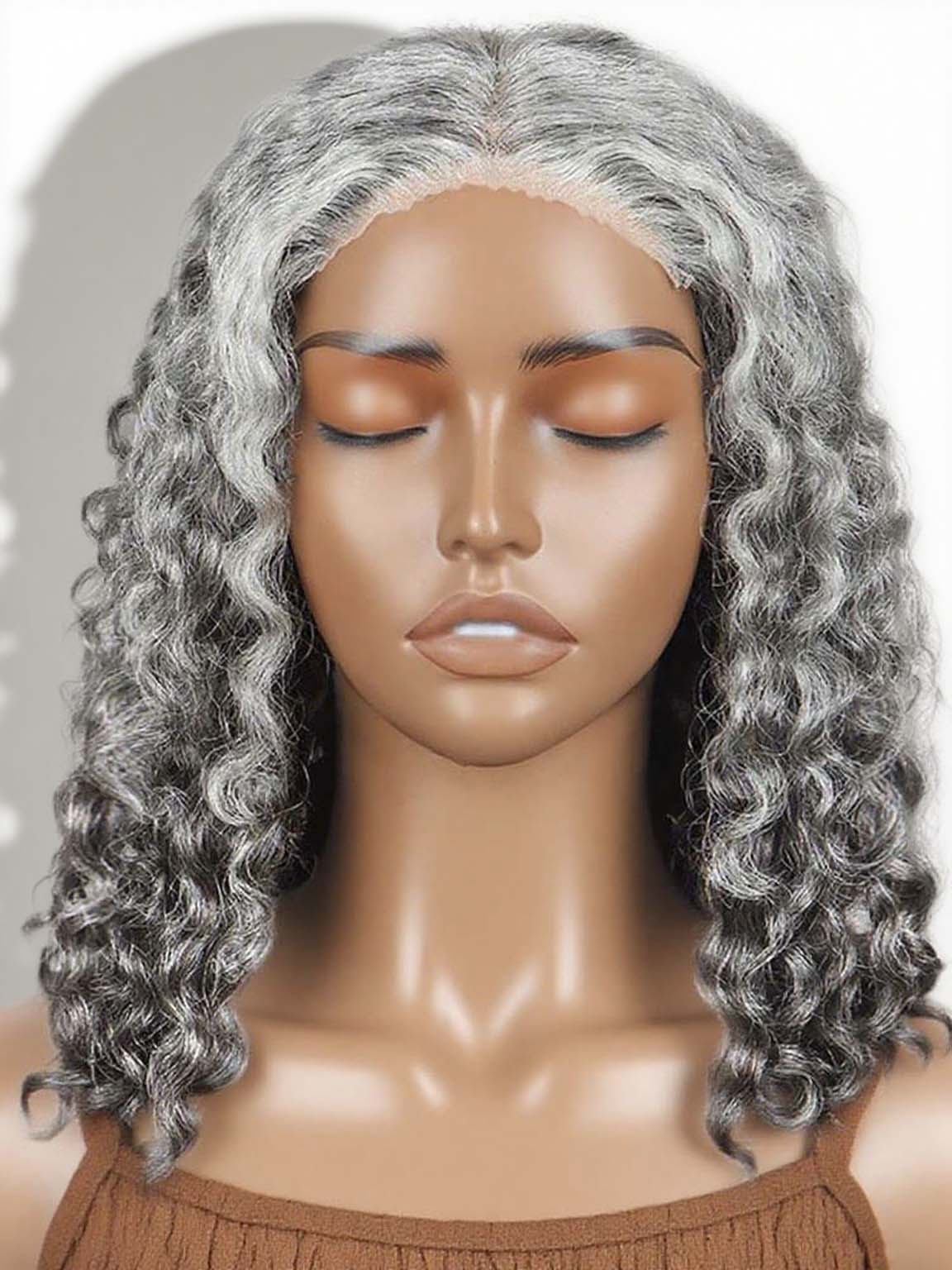 Variahair Salt and Pepper Color Coily Human Hair Curly Bob 5X5 Closure Lace Wigs