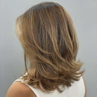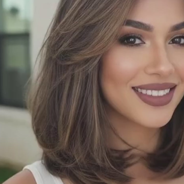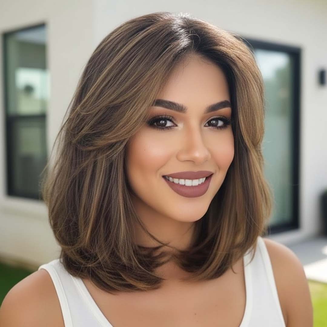 The layered cut adds dimension and volume, creating a modern, salon-finished look that frames the face beautifully.