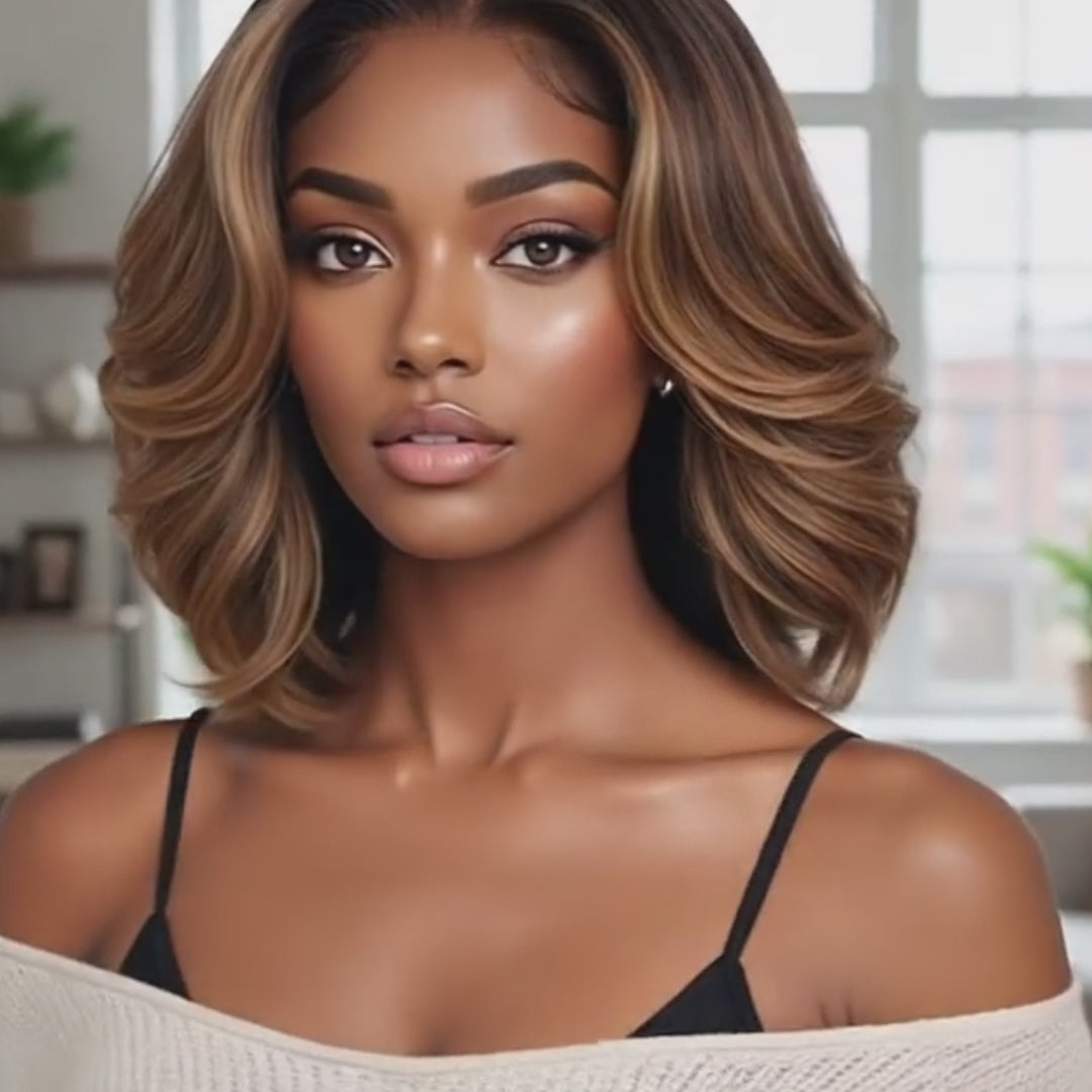 Effortless. Professional. Polished. Meet the Human Hair 13x4 Lace Frontal Wig Designer Highlight, Middle Part, Layered Short Bob. Built for busy women who want a salon-quality, natural look without the daily styling fuss. This glueless, pre-plucked bob delivers instant confidence for work, meetings, and everyday life.
