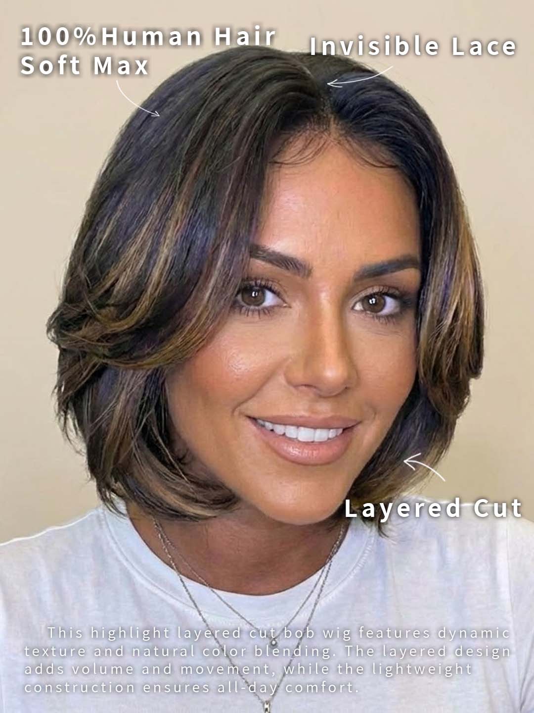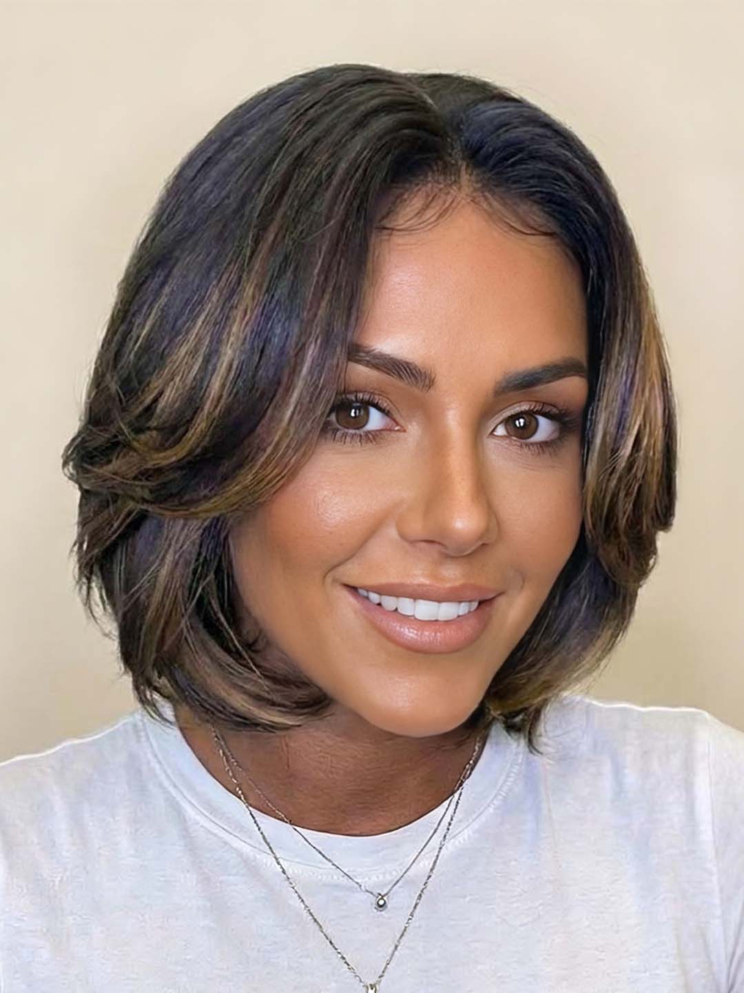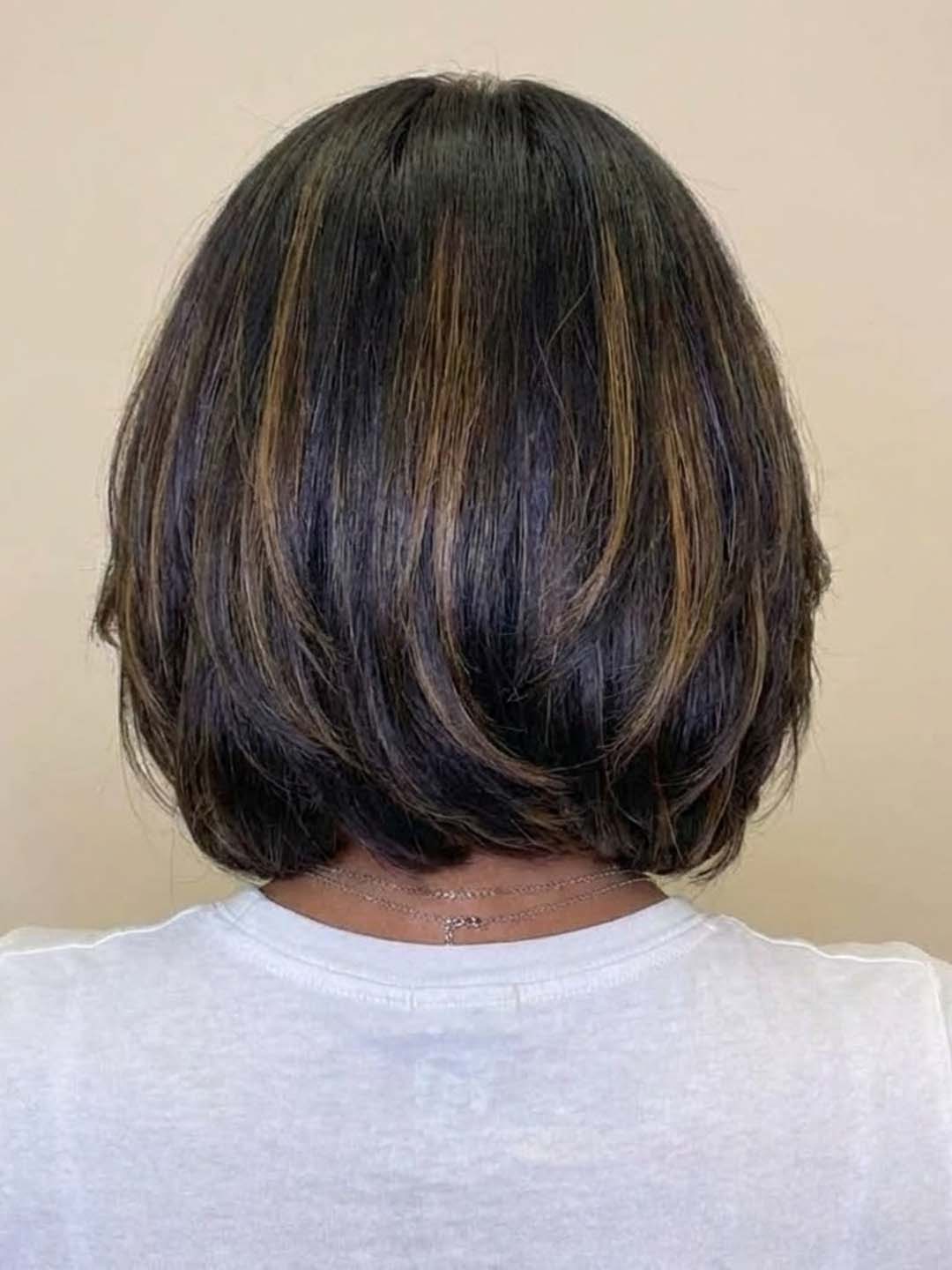 Layered Highlight Bob Cut: Face-framing layers with subtle highlights add depth and radiance.