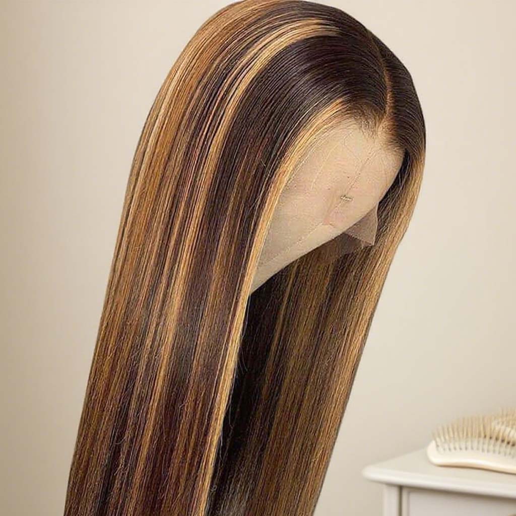 Varia Hair 13x4 Lace Frontal Human Hair Wigs Brown Highlights Glueless Pre Plucked Natural Hairline No Shedding