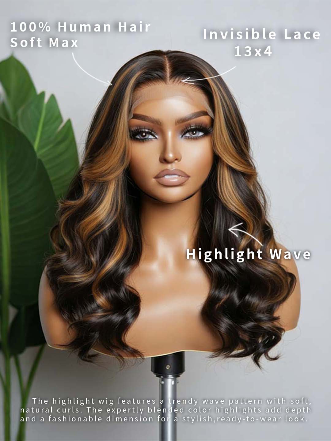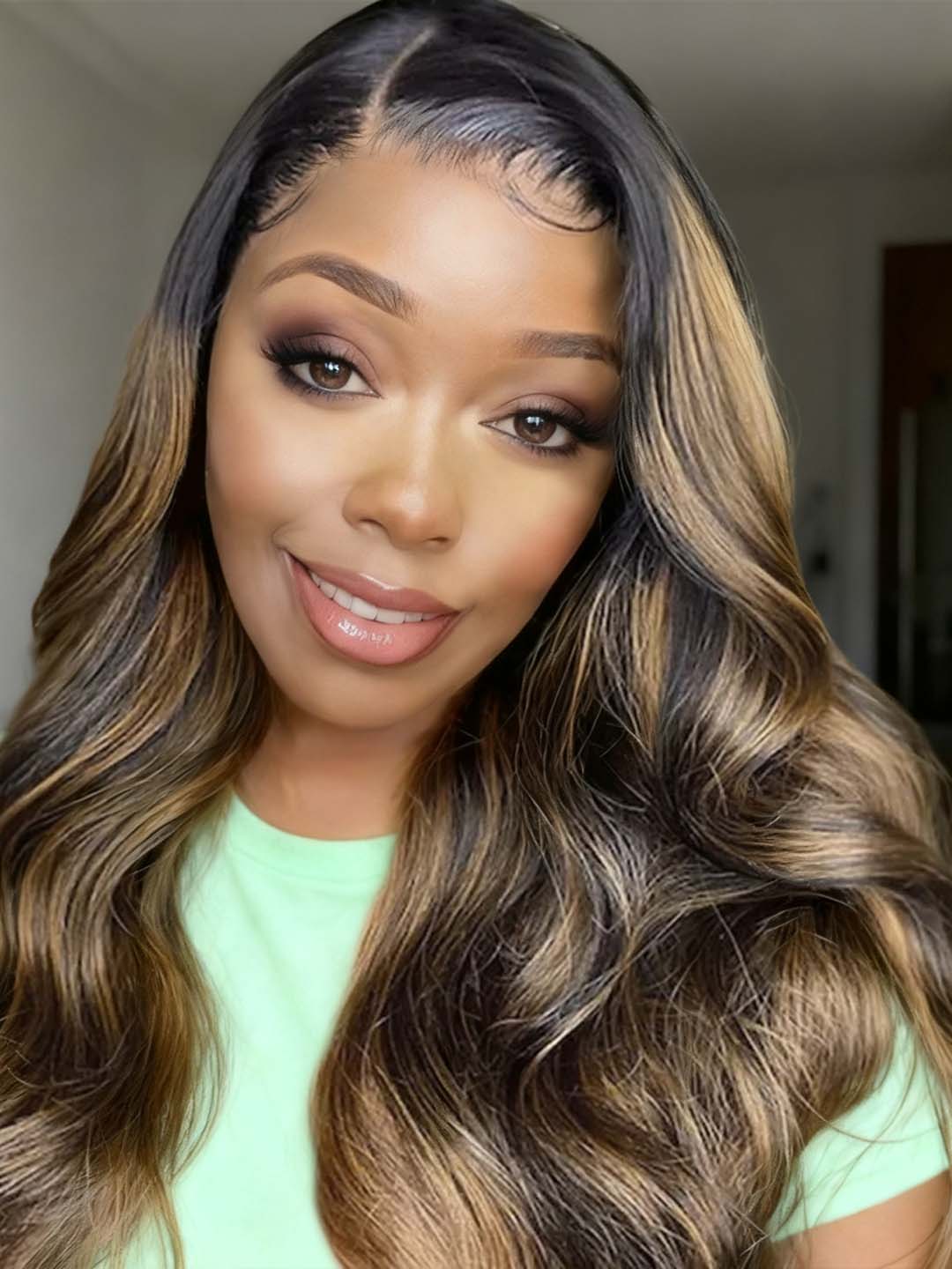 Balayage Highlight Wavy 13x4 HD Lace Frontal Human Hair Wig
