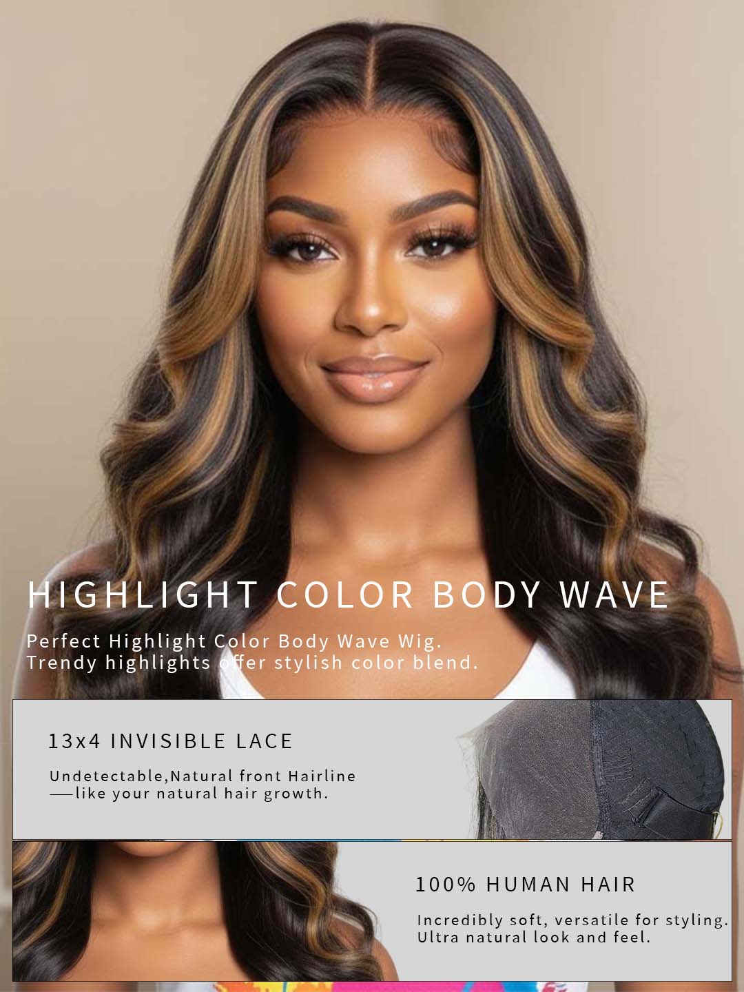 Length: 12-26 inches | Color: Balayage Highlight | Lace: 13x4 invisible HD Lace | Cap: Medium with adjustable straps
