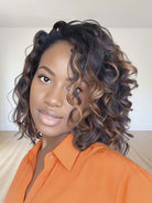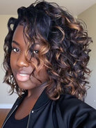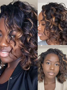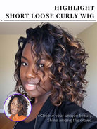 No Glue Easy Wear Short 13X4 Lace Frontal Wigs Loose Curly Human Hair Highlight