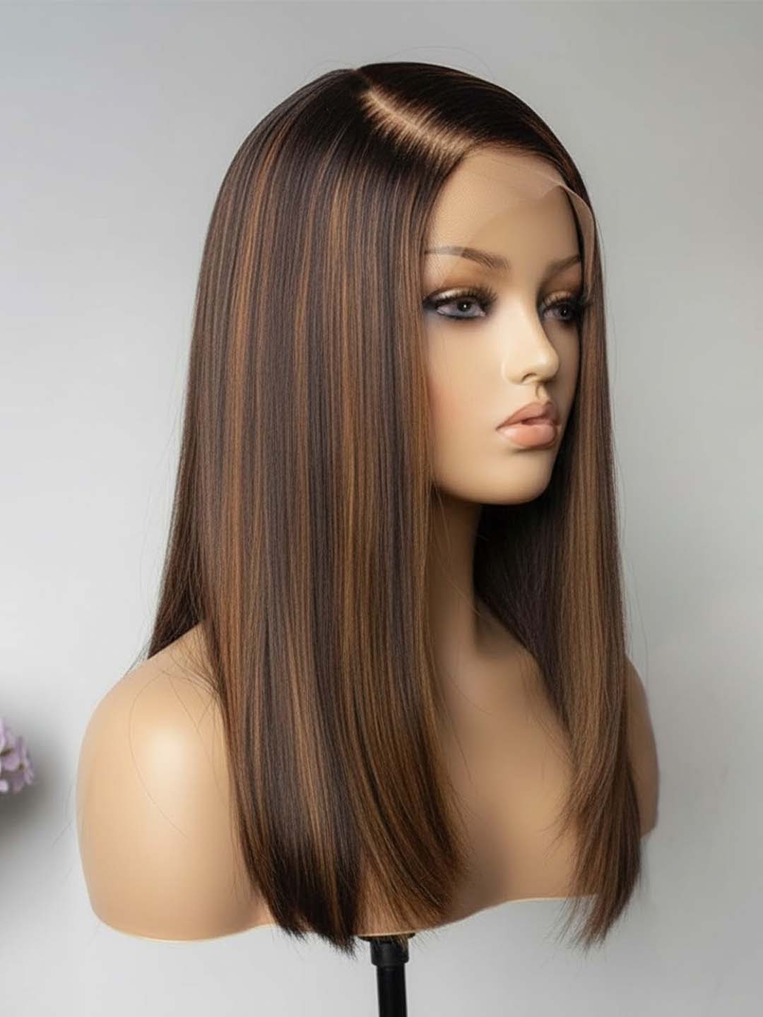 Glueless 5x5 Lace Closure Wig – Natural Black with Brown Highlights