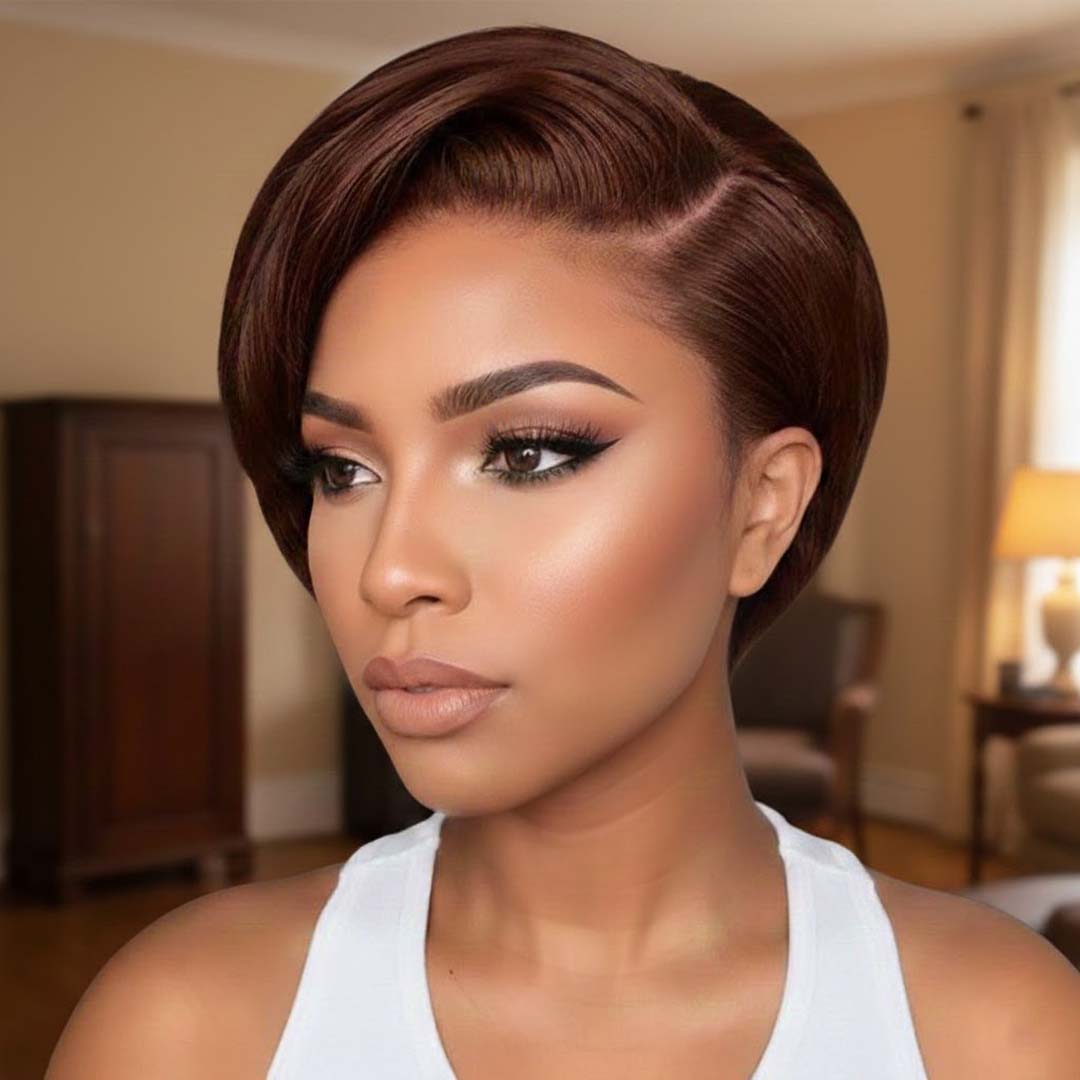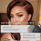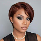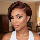 Human Hair 5x5 Lace Closure Glueless Reddish Brown Pixie Cut Wig Bold, Natural & Effortless Beauty