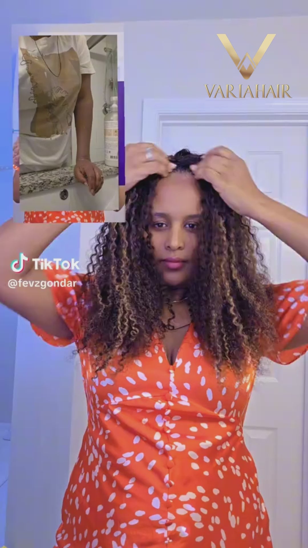 [Flash Shipping] Varia Hair Super Full 250% Density Highlight Brown Color 3C Curly Ready To Wear 3 in 1 Wig