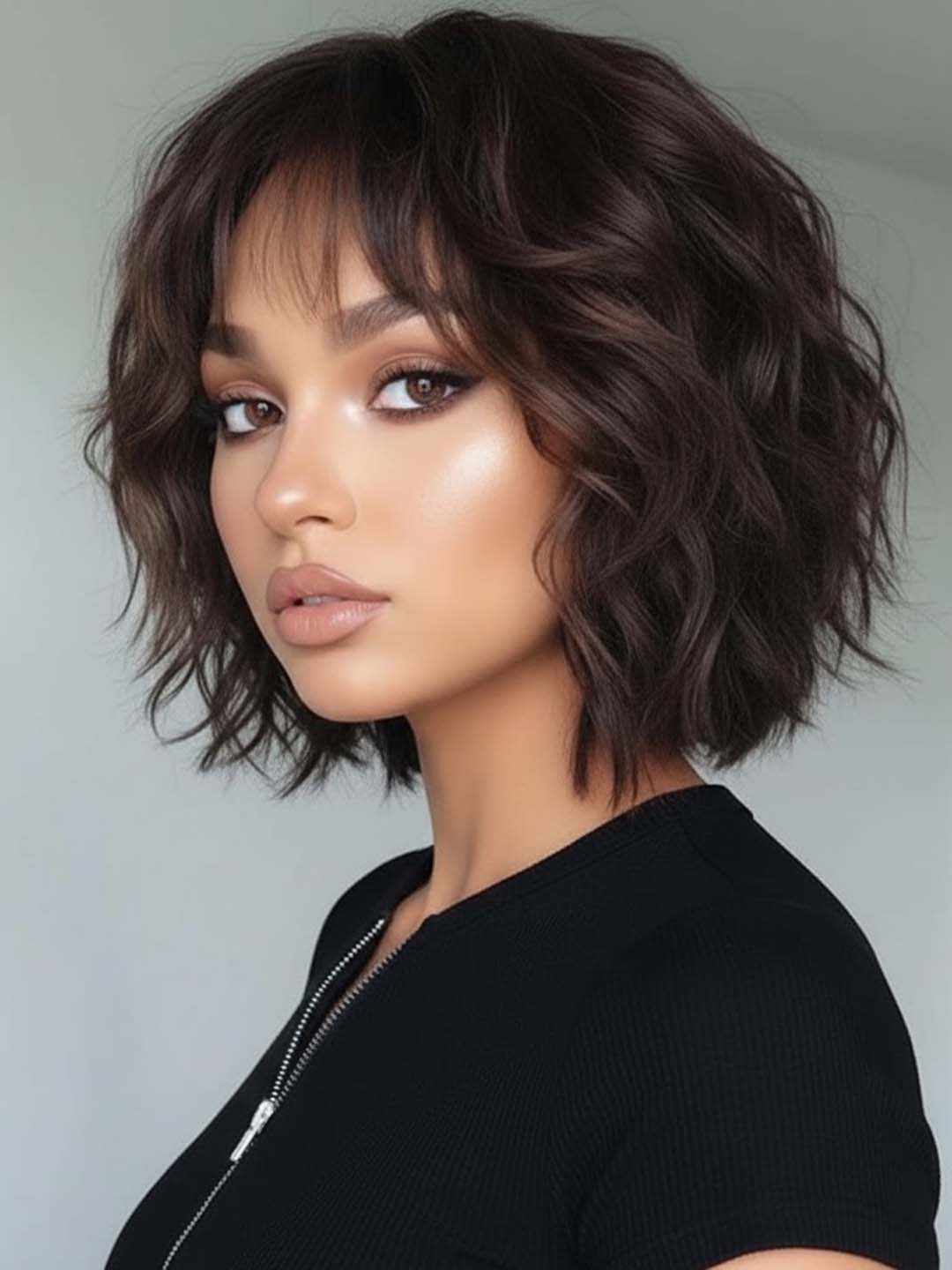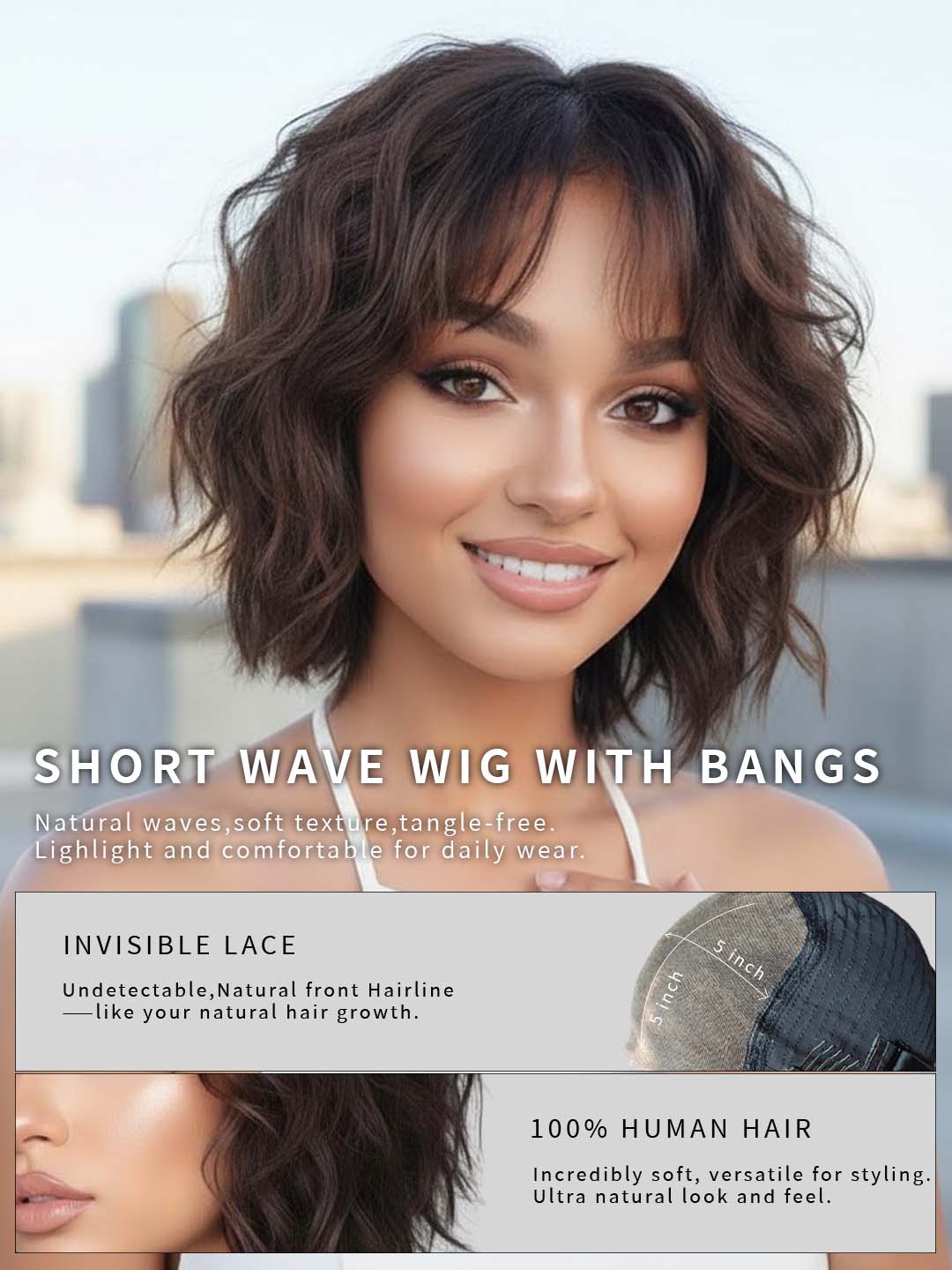 Upgrade your everyday look with this soft, wavy bob 5x5 lace closure wig, designed for effortless style and a flawless, natural finish. Inspired by modern layered cuts, this wig delivers light movement, natural volume, and a face-framing shape that looks like your own hair.