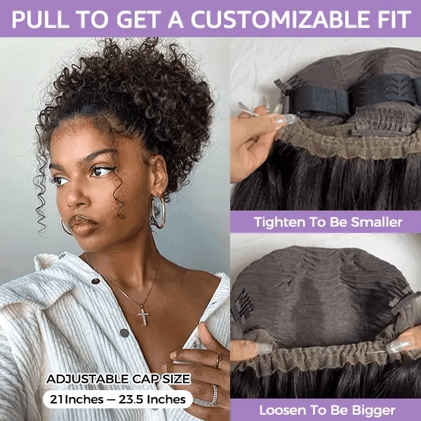 Embrace your texture with our Kinky Curly 360 Lace Flexi-Fit Invisi Drawstring Cap Long Wig, crafted from 100% premium human hair to deliver defined, voluminous curls with natural movement.
