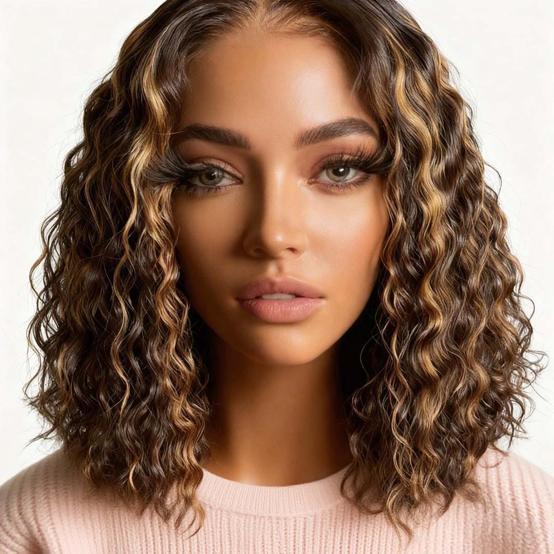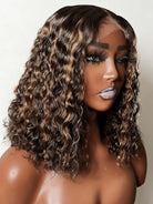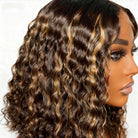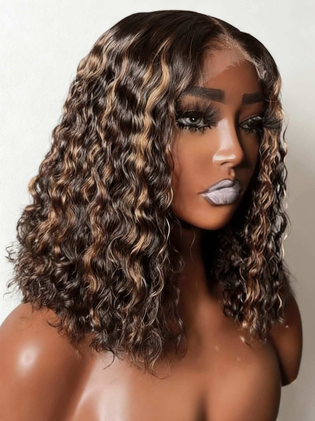 Wear And Go Wig #4/27 Ombre Highlight Pre Cut Lace Bob Curly Wigs Human Hair 5x5 Closure Lace Wig