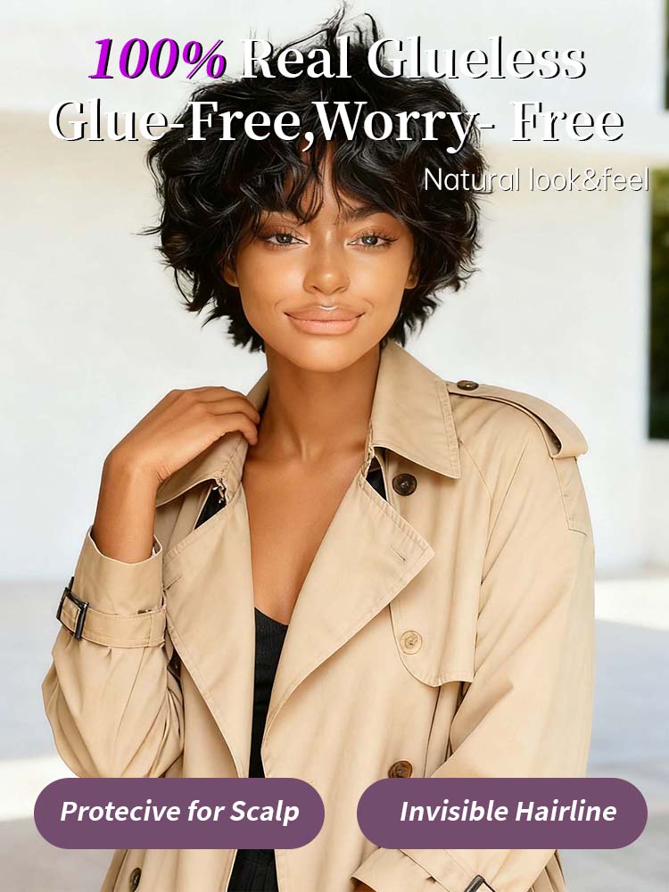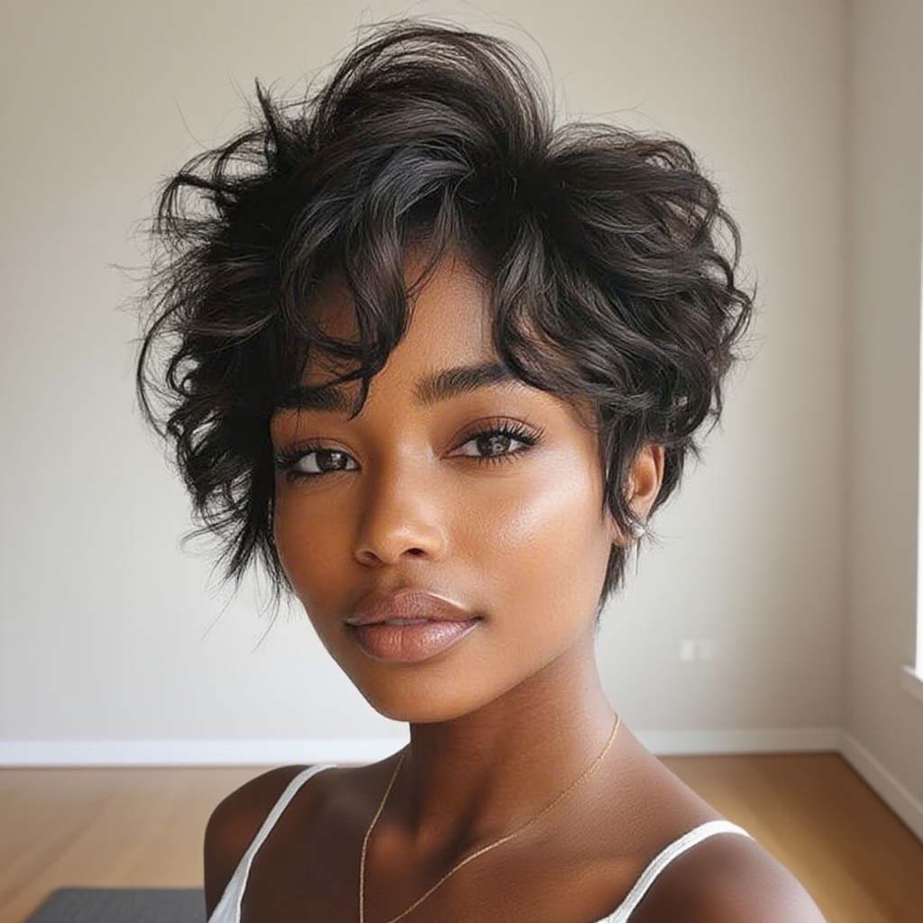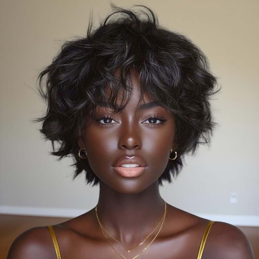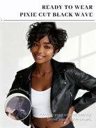 Glueless Human Hair 5×5 lace closure Wigs for Black Women Ready to Wear Pixie Cut Black Waves Short No Shedding