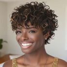 Pre Cut Lace Glueless Human Hair Wigs Ready To Wear Highlight Curly Pixie ut With Bangs Glueless Mini-Closure Lace Wig