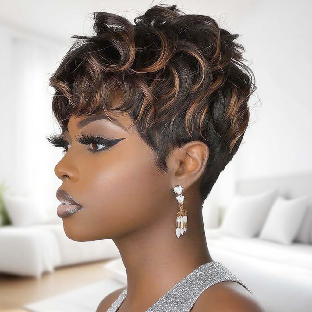 Lace Front Human Hair Pixie Cut Wig Short For Black Women Glueless Mini-Closure Lace Wig