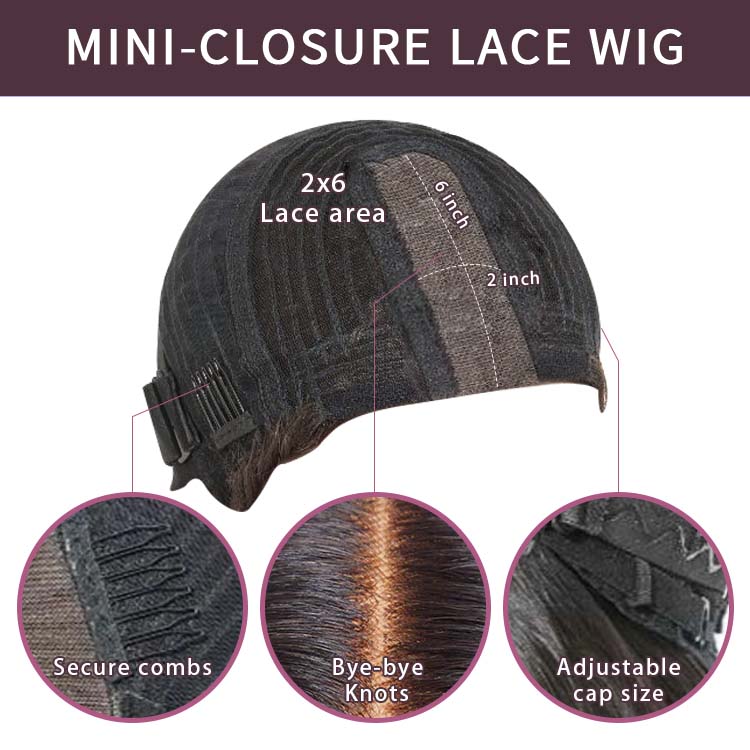 Wig cap size: Medium Size (made with stretch lace + adjustable tools, our M size can fit head circumference size from 21.75inch - 23.25inch)