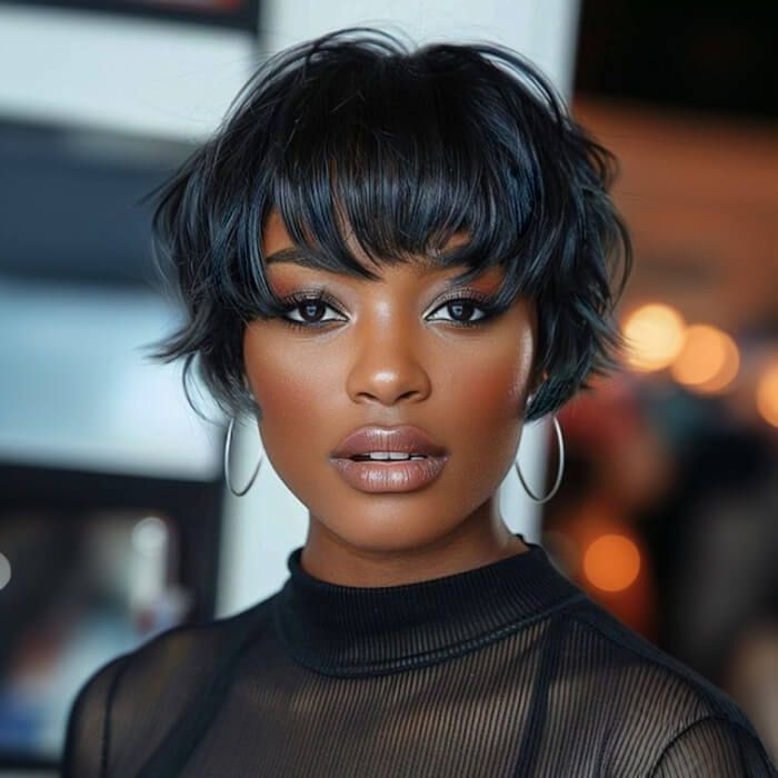 Ready to Wear Short Glueless Mini-Closure Lace Wigs Wigs Pixie Bob Cut with Bangs Human Hair for Black Women