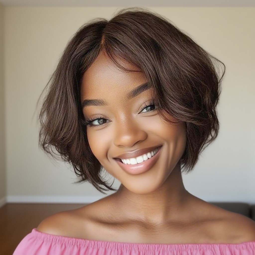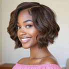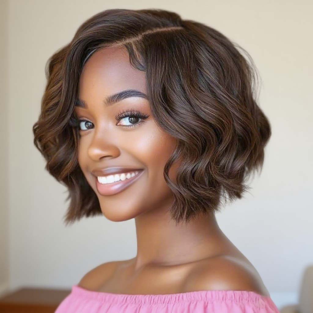 Wear Go Human Hair Pixie Cut Wig Short Brown Wavy 5x5 lace closure wig