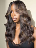 Made from 100% human hair, this 26-inch body wave wig delivers soft movement and a natural sheen that mirrors real hair. The brown highlights add warmth and dimension, creating a sun-kissed, salon-quality finish. Designed with invisible HD lace and a 5x5 pre-cut, pre-plucked, pre-bleached closure, it ensures a flawless hairline and comfortable fit no glue, no stress.
