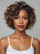 Crafted from 100% premium human hair, this short wavy bob delivers salon-fresh shine and bounce in seconds. Its highlighted tones add natural dimension, while the 13x4 HD lace frontal blends seamlessly for a realistic scalp look. No glue, no fuss just secure, lightweight comfort all day.