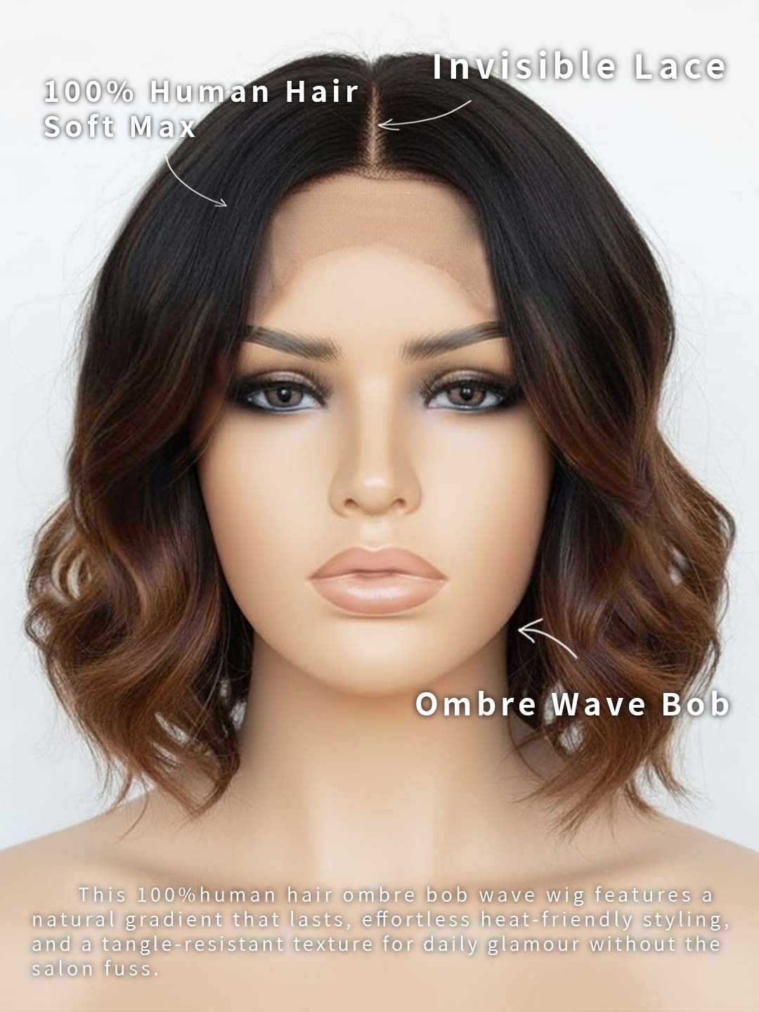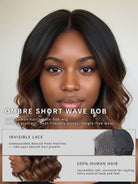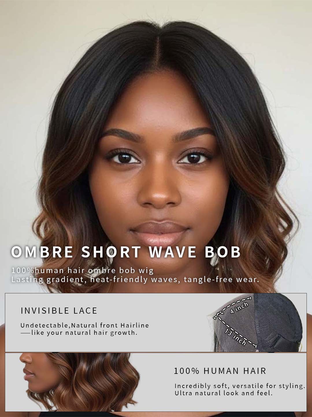 Human Hair 13x4 HD Lace Frontal Wig Short Bob Ombre Wave Glueless Natural Look Pre Plucked