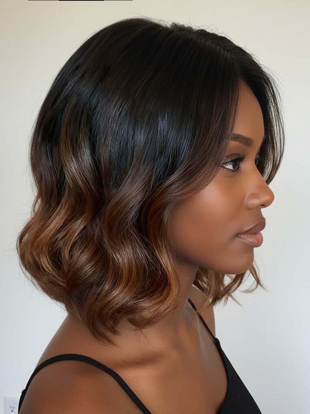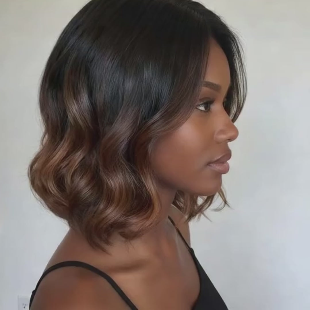 With its Ombre Brown highlights and soft, wavy texture, this bob radiates sophistication while maintaining a light, breathable feel. The glueless design and pre-plucked, pre-cut, pre-bleached hairline make installation beginner-friendly no stylist needed, no mess, just instant beauty.