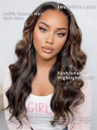 Ombre Highlight Wavy Human Hair Wig 13x4 Lace Frontal Glueless, Pre-Plucked & Natural Look