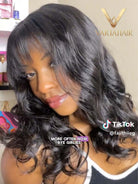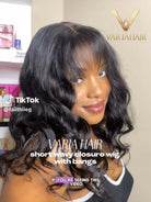 Invisible Mini-Closure Lace Wigs Glueless Human Hair Messy Wave With Bangs Pre Cut No Shedding Natural Hairline