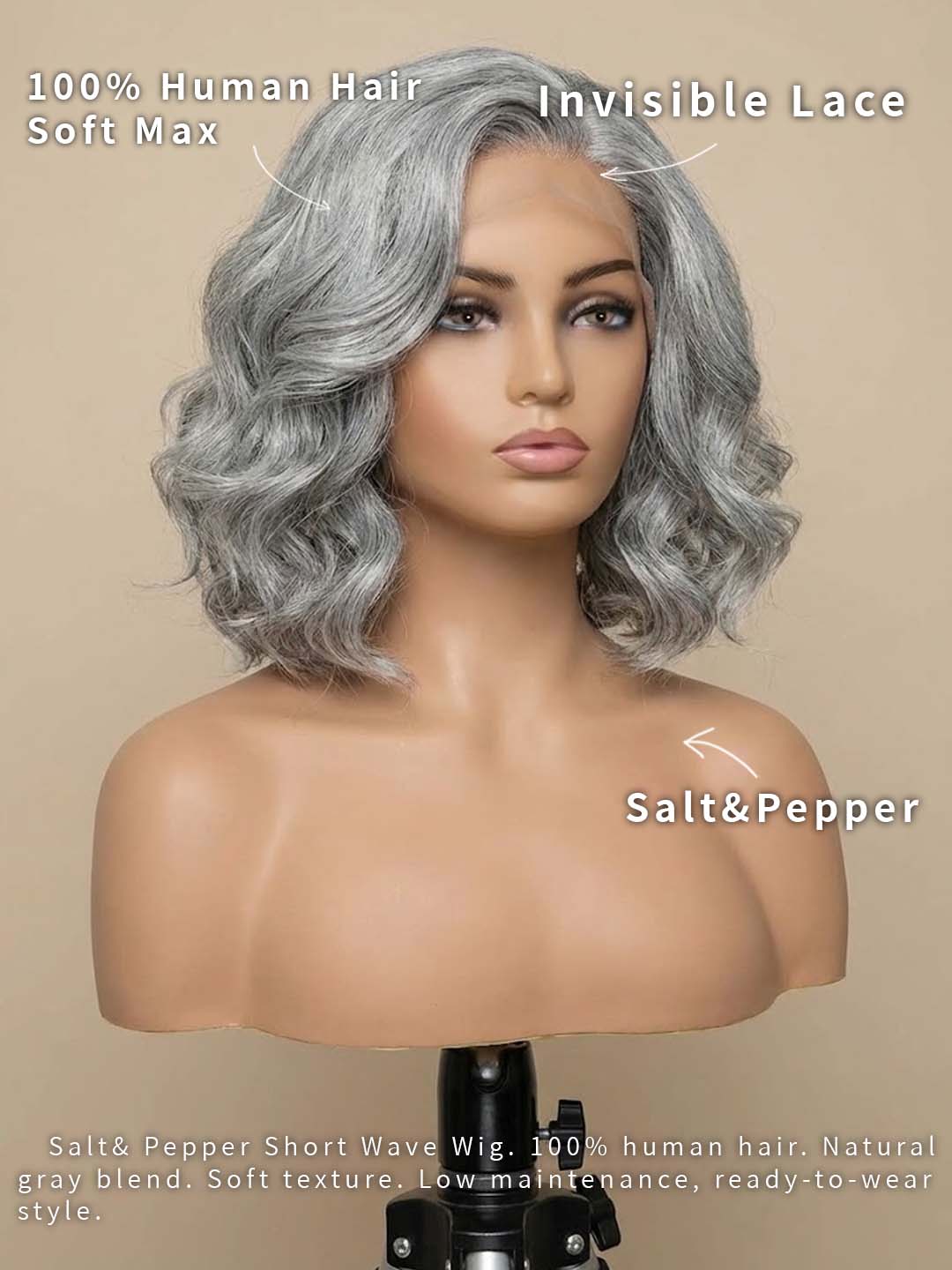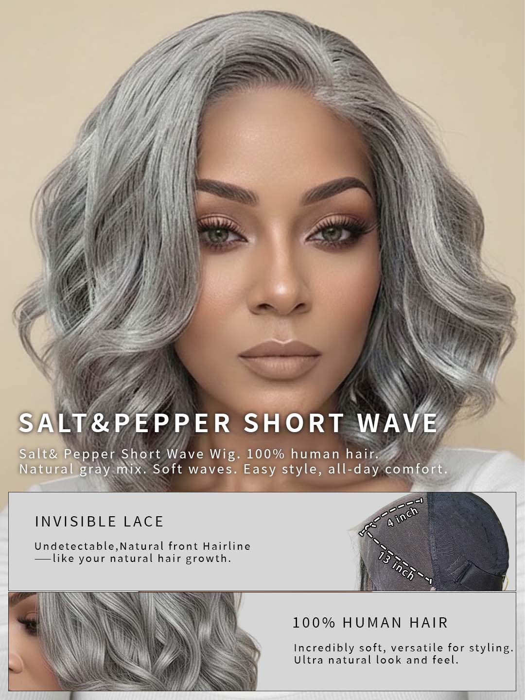 Soul Lady Salt and Pepper Short Wave Bob Wig Natural Beauty, Effortlessly Elegant