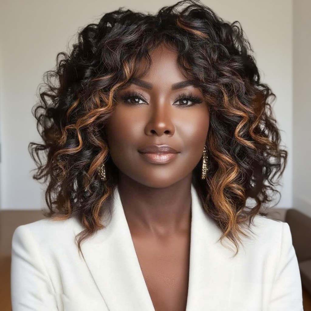 Wear And Go Wigs Copper Highlight Bouncy Curly Bob Wigs Glueless Human Hair Wigs 5x5 lace closure wig