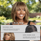 Honey Blonde Highlights Human Hair Bob Wig Glueless Lace Front Bangs Mini-closure Lace Wig