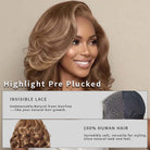 Human Hair 13X4 Lace Frontal Wig Glueless Layered Side Part Highlight Natural Look Pre Plucked With Elastic Drawstring