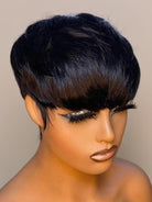 Discover the freedom of flawless, everyday beauty with our Human Hair Short Pixie Cut Wig with Bangs. Designed for women who want a ready-to-go, natural-looking style without lace, glue, or hours of customization just put it on and go!