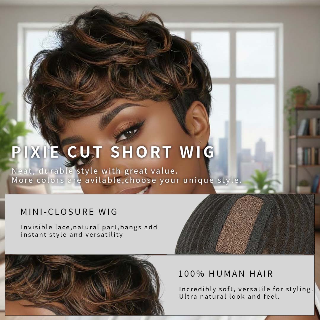 Lace Front Human Hair Pixie Cut Wig Short For Black Women Glueless Mini-Closure Lace Wig