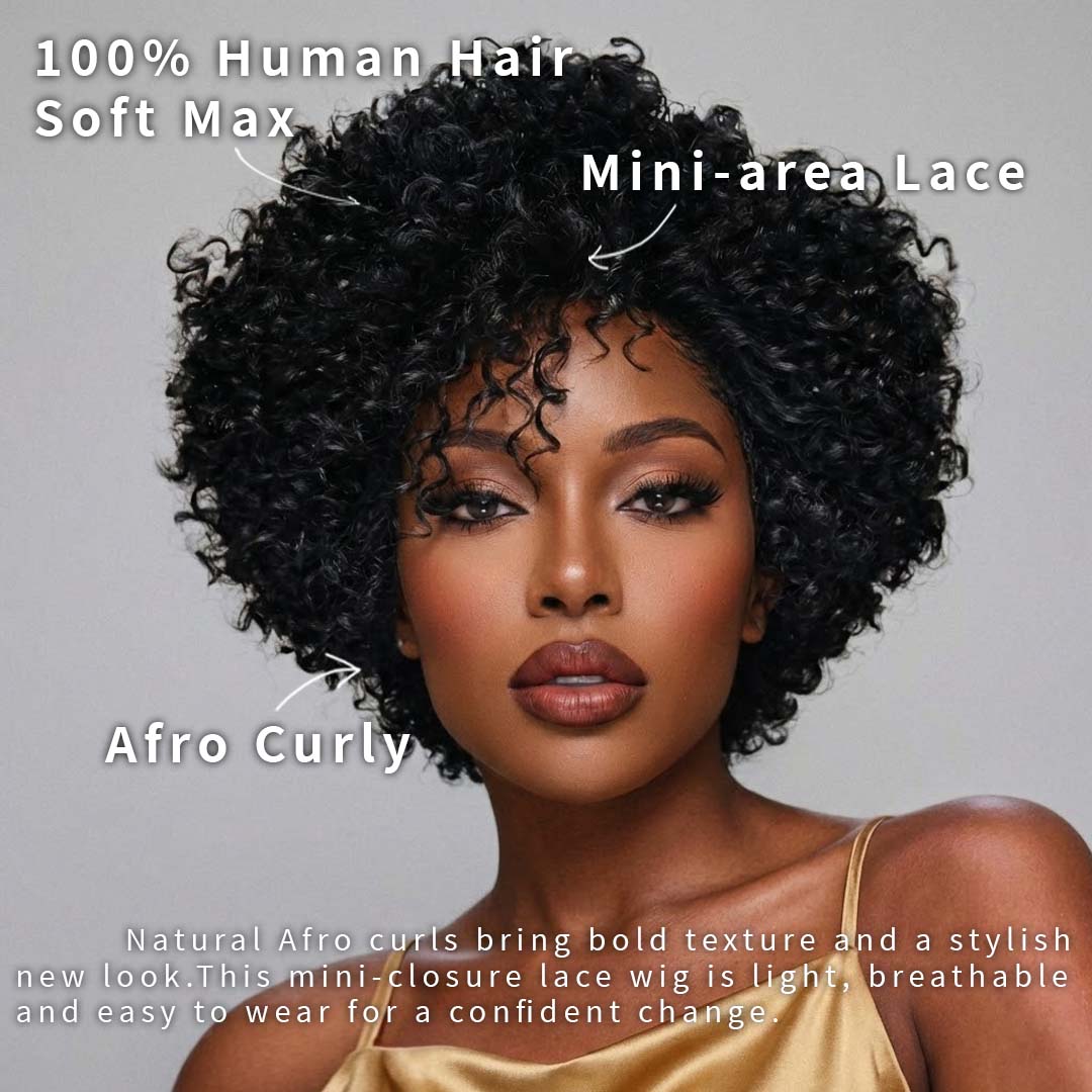 Varia Hair Glueless Human Hair Mini-Closure Lace Wigs Afro Curly Ready To Wear No Shedding Natural Look