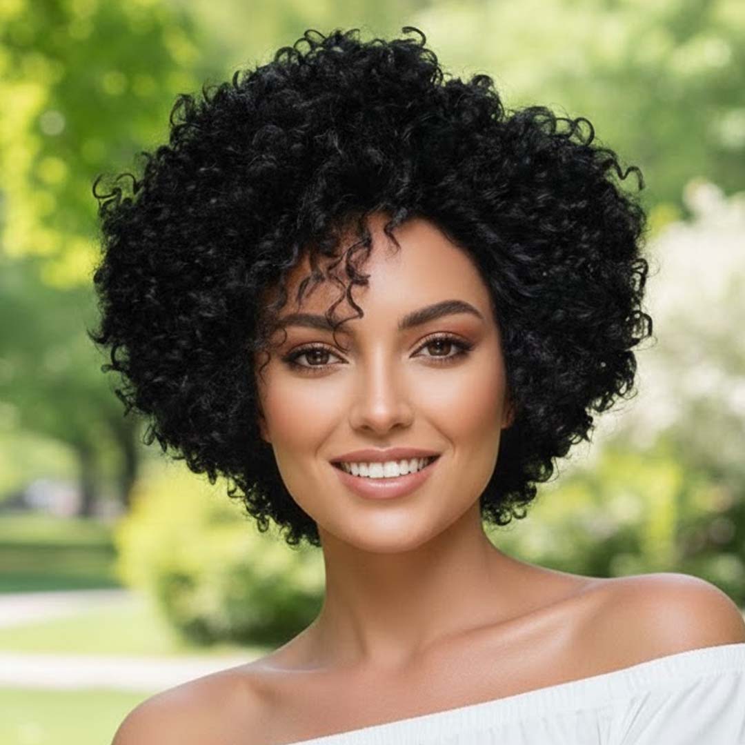 • Model Hair Length: 8 inches Short, manageable, and naturally curly for everyday wear.