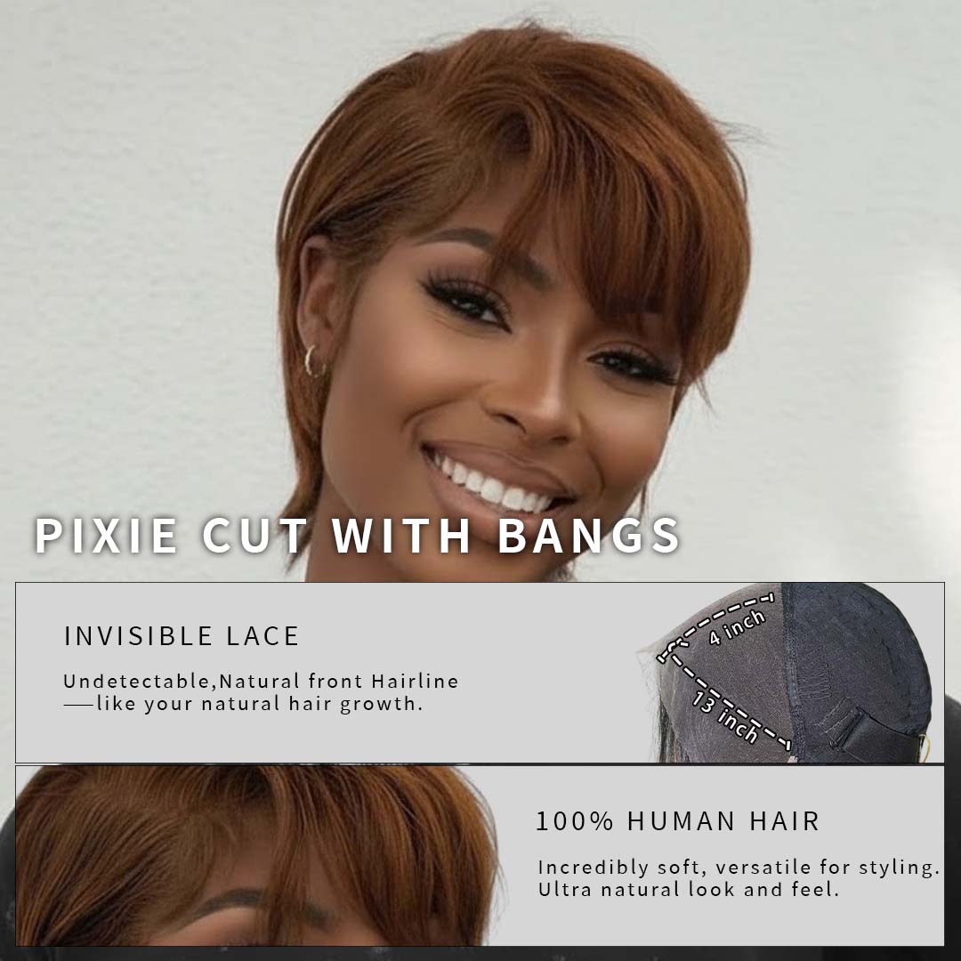 Variahair Luxury Copper Brown Wear And Go Short Pixie Cut 13x4 Lace Frontal Wig WIth Bangs