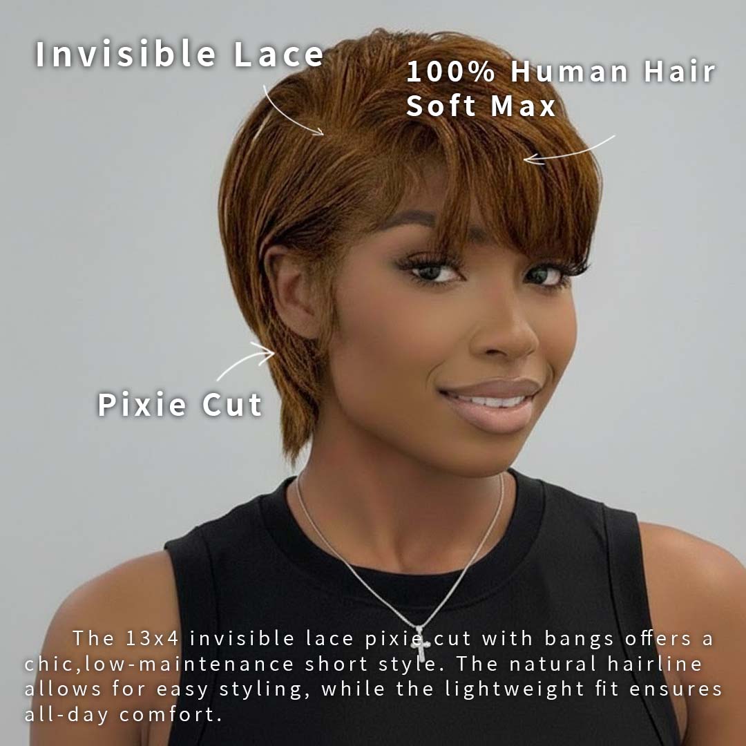 Chic. Modern. Effortless.Variahair Luxury Copper Brown Wear And Go Short Pixie Cut 13x4 Lace Frontal Wig