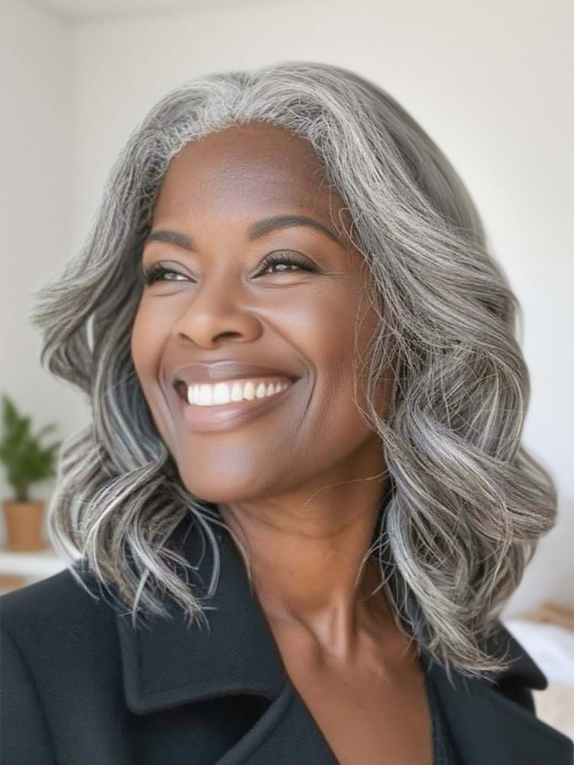 Rich salt and pepper tones that mimic a natural gray blend, offering a sophisticated and timeless look.