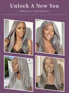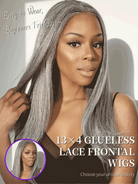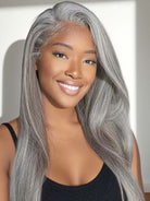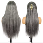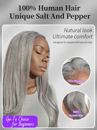 100% Human Hair 13X4 Lace Frontal Wig Glueless Straight Salt And Pepper Natural Look Pre Plucked